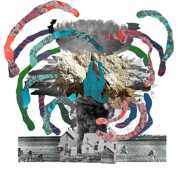 In the Kalahari desert, the South African government ordered the shafts of the nuclear testing site ‘Vastrap’ to be sealed by the pouring of concrete into steel drums. We created a 360 degree ‘portrait’ for each of these places – a collaged visual layering of narratives that are usually kept distinct and a fashioning of new historical constellations. We wanted to problematize and disrupt the disembodied, satellite-like vantage point from which locations are usually viewed on Google Earth – in these portraits, there is no clean horizon: you are inside of the environment; time and perspective are warped. This way of seeing acts as a kind of resistance to the violent dislocation and displacement of images and materials, and their subsequent circulation.